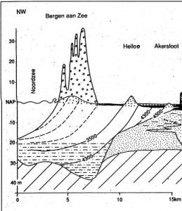 Heiloo is gelegen op een oude strandwal. Evenwijdig aan de kust liggen strandwallen ontstaan door eb- en vloedbewegingen. De kustlijn ontwikkelde zich van oost naar west. Er ontstonden drie strandwallen. Op de eerste (ontstaan ca. 3000 v.C.) liggen Akersloot en Uitgeest. Tussen de strandwallen ontstonden veengebieden die later door zeedoorbraken met water werden gevuld (Boekelermeer, Alkmaardermeer, Egmondermeer, Bergermeer). In de late middeleeuwen, vooral door inspanningen van de Egmonder Abdij, werden de zeedoorbraken bedwongen door dijkaanleg. De oorspronkelijke veengebieden vulden zich met zand dat van de strandwallen waaide. Zo ontstonden ‘geestgronden’ (vandaar de naam ‘Uitgeest’). De strandwallen vormden een – relatief – veilige plek om bewoners te beschermen tegen de grillige zee. De vondst van ‘het houtje van Heiloo’, een plankje dat werd gebruikt om vuur te maken, zou erop kunnen duiden dat reeds in de (prehistorische) Midden Steentijd (ca. 8000 v.C.) bewoning aanwezig was. Dus voor het ontstaan van de strandwallen. Op hogere gedeelten in wat nu Noord-Holland is, zoals Texel en Wieringen, zijn vondsten gedaan uit de Nieuwe Steentijd, zoals een boomkano van ca. 3300 V.C. In de jaren 2000-800 v.C., de Bronstijd, woonden er – neemt men aan – jagers, vissers en later landbouwers op de strandwallen. Bij opgravingen aan het Maalwater in 2005 zijn sporen aangetroffen van wat hoogstwaarschijnlijk een ‘woodhenge’ is geweest, een rituele palencirkel uit de prehistorie. Naar alle waarschijnlijkheid betreft het een rituele plek, waarvan er in Engeland meer zijn gevonden, vandaar de naam ‘woodhenge’. Oudheidkundig onderzoek in Heiloo en enkele vondsten van leken in het begin van de twintigste eeuw onderstrepen dat de strandwal waarop Heiloo ligt vanaf de Bronstijd (2000 – 700 V.C.) bewoond werd. Daarop wijzen de rond 1930 gevonden zogenaamde ‘sikkels’ van vuursteen en brons (van ca. 1000 v. C.) die hebben gediend als landbouwgereedschap. Deze vijf sikkels zijn vlakbij de plaats gevonden waar later de palencirkel is ontdekt. Ze stonden dusdanig gegroepeerd dat het ook op een ritueel duidt. Over het Romeinse tijdperk (rond het begin van de jaartelling en de eerste eeuwen n.C.) is het een en ander bekend. De Romeinen bezetten ons land rond de jaartelling en stichtten o.a. een fort gelegen bij het huidige Velsen. Dat verklaart de vondst in de bodem van Heiloo van vaatwerkscherven en munten van Romeinse herkomst. Ook de in 1921 gevonden weefgewichten (ringen van gebakken aardewerk) duiden bewoning ca. 200 n.C. aan. De Romeinse (culturele) invloed in het noorden van ons land is mede door de tegenstand van de daar wonende Germaanse bevolking, de Friezen, lang niet zo overheersend geweest als in het zuiden. Er is een periode na de Romeinse tijd (400 – 700 n.C.), de ‘Donkere Middeleeuwen’ waarover weinig bekend is, ook wat betreft de bewoning van Heiloo. Men neemt aan dat het noordelijk deel van Heiloo niet of nauwelijks bewoond was en het zuidelijk deel, Oesdom, wel bewoning kende. Dit wordt ondersteund door enkele bodemvondsten. Het noordelijk deel, rond de plaats waar nu het Witte Kerkje staat, kan een heilige plaats geweest zijn, een oud Germaans heiligdom. Heiligdommen werden altijd op enige afstand van een nederzetting gesticht. Vandaar wellicht de naam Heilichloo, of Heilighelo of Heyloo. De naam betekent waarschijnlijk ‘heilige hoogte’. De voor de hand liggende vertaling ‘heilig bos’ is minder waarschijnlijk. De strandwallen kenden in de middeleeuwen nog weinig bebossing. De prediker Willibrord koos ca. 720 n.C. – met opzet – de (heidense) heilige plek om een kerk te bouwen. Gegevens, foto’s en tekeningen ontleend aan: “Heiloo door de jaren heen”, H. Oostendorp; Heiloo voor en na Willibrord, J.H.N.W. Raat, T de Ridder; Noord-Hollands Dagblad. Meer over archeologische vondsten kan men vinden bij Baduhenna. Zie: Links -> Heiloo Gerelateerd. (volgt later) |